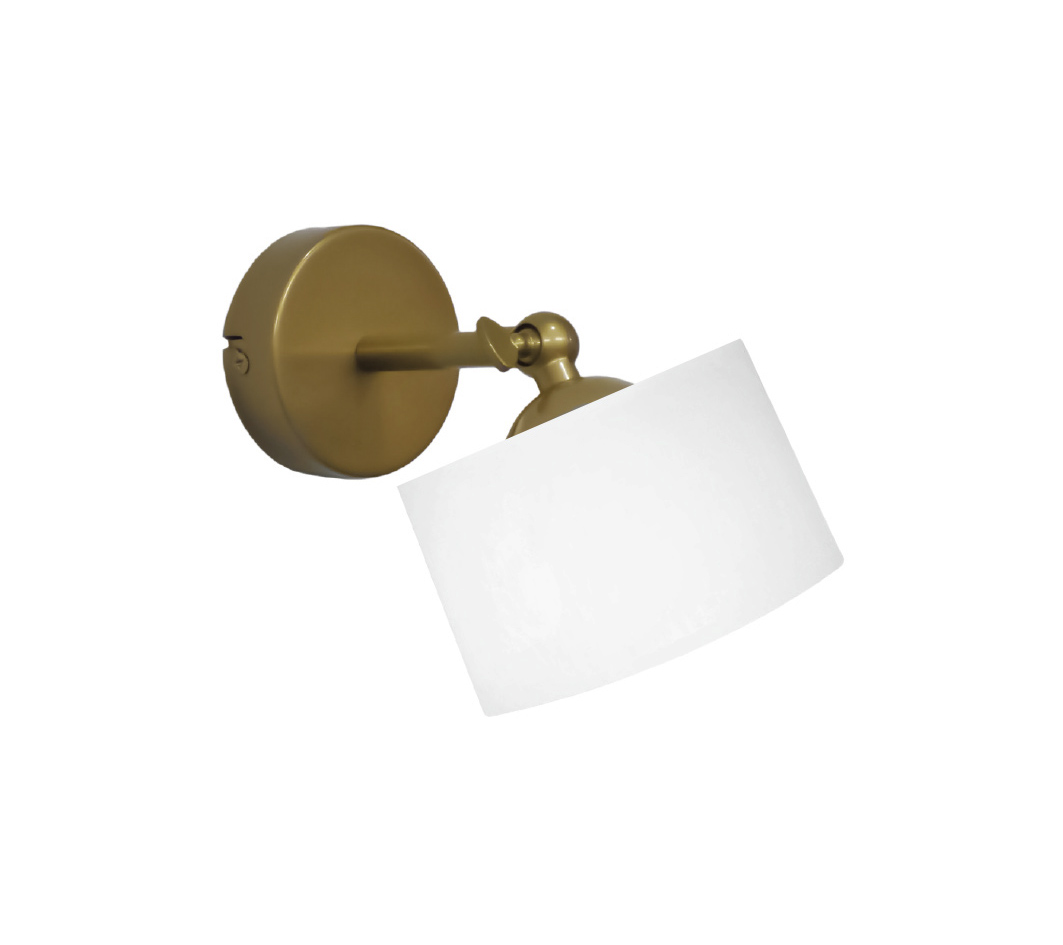 Επιτοίχιο φωτιστικό με μεταλλική βάση χρυσό ματ ,κλειδί για να αλλάζει κατεύθυνση και καπελάκι πλαστικό λευκό , DRUM/AP KEY GOLD-WH ΑΠΛΙΚΑ