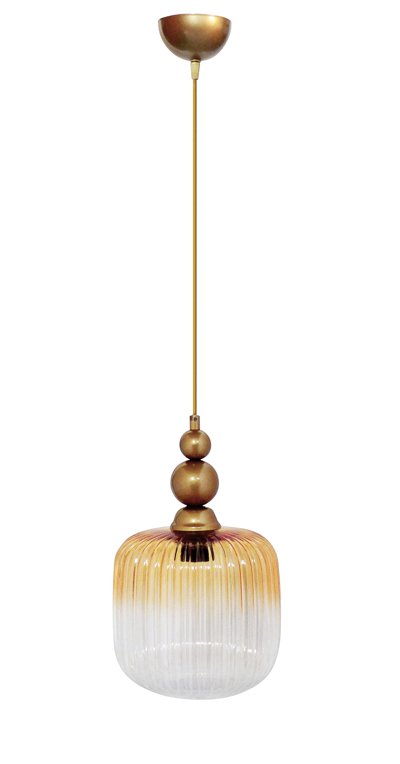 Φωτιστικό κρεμαστό με καλώδιο χρυσό και γυαλί μελί