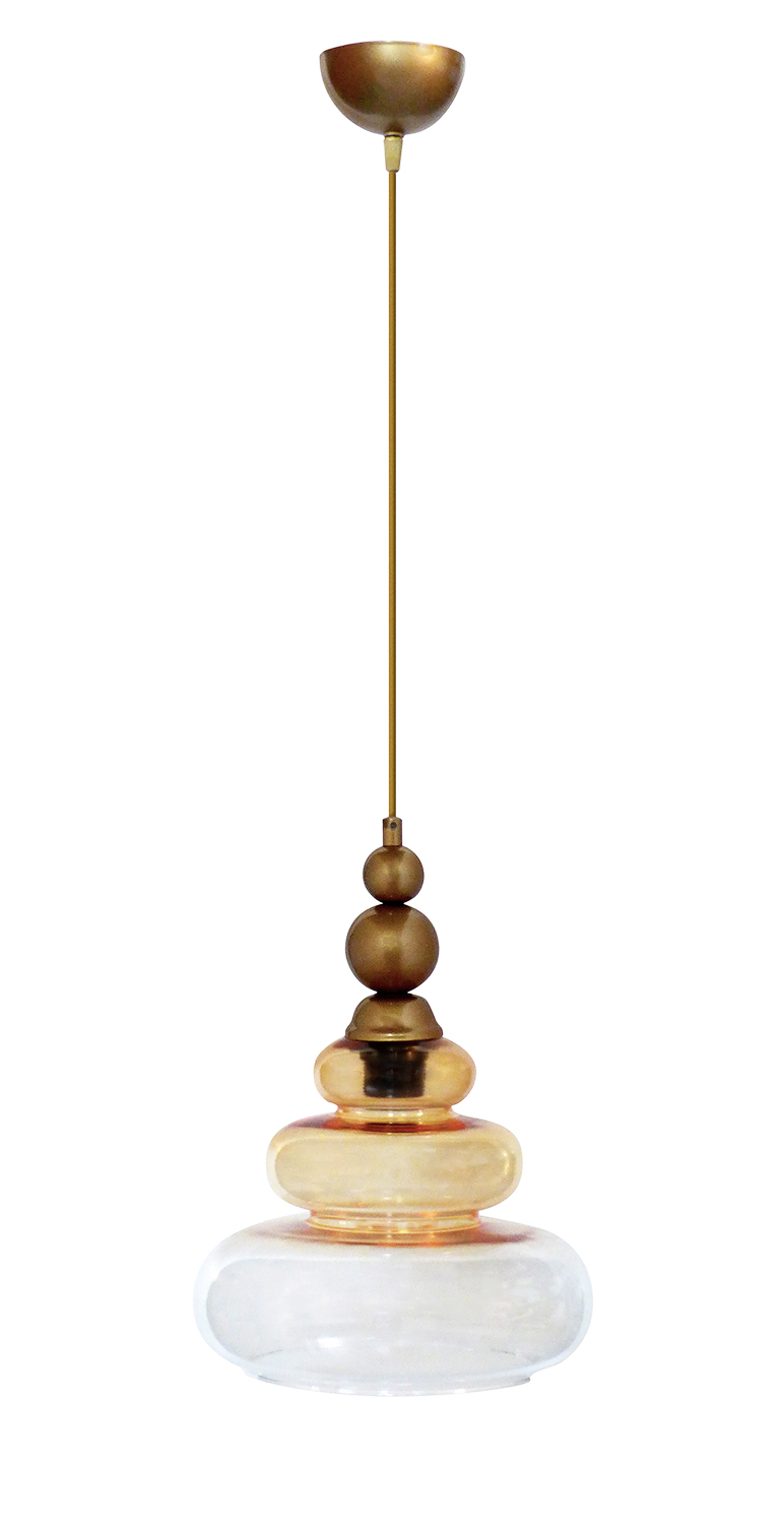 Φωτιστικό κρεμαστό με καλώδιο χρυσό και γυαλί μελί