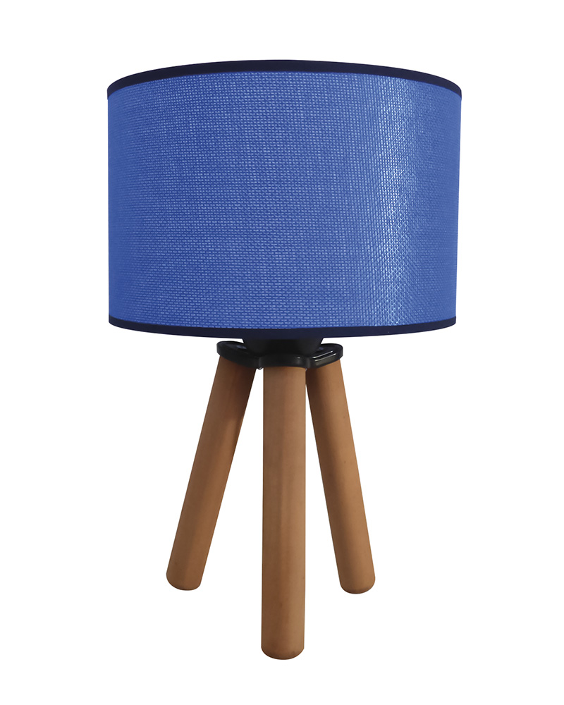Πορτατίφ Η-08-Β-/TL 3-ΠΟΔΟ μπλε γαλάζιο Ε/27 Αμπαζούρ με ξύλο