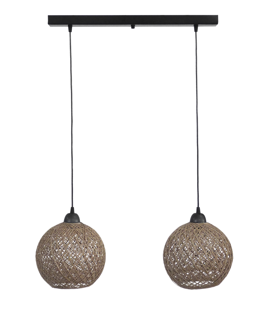 Φωτιστικό ράγα μεταλλική μαύρη με πλεχτές μπάλες φυσικό σχοινί SILK/2L RAGA CE BL-NATURAL